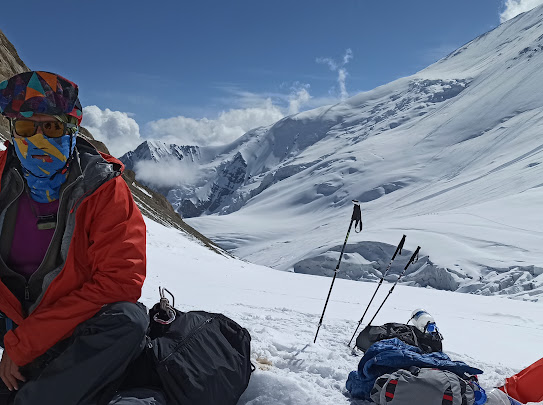 Ранний выход и подъем в Лагерь 3 на высоте 6100 м (время в пути около 6 часов). Ночевка в Лагере 3. Сегодняшний переход займет около 5-8 часов, нужно подняться вверх на 800 м. Тропа к следующему Лагерю 3 проходит сначала по склону гребня, дальше поднимается на вершину Раздельная (6148 м) и немного спускается вниз к перемычке, на высоту 6100 м. Здесь заночуем. Спать на высоте 6100 м над уровнем моря не так легко.