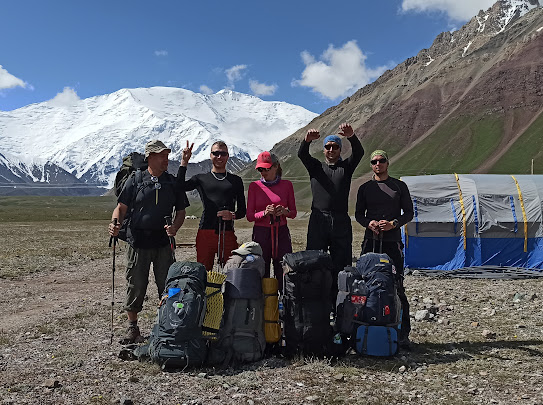 После завтрака нас ждет продолжительный трансфер (около 6 часов) к базовому лагерю «Ачик-Таш», расположенному на высоте 3600 м.. В базовом лагере - размещение в двухместных палатках. Столовая оснащена хорошей посудой, предоставляется качественное питание. В кают-компании имеется обогрев и все, необходимое для отдыха (музыкальные инструменты, настольные игры). Электричество, душ, туалет, камера хранения, интернет. Как раз самое время рассмотреться по сторонам. Ведь лагерь расположился в очень живописном месте, в окружении разноцветных склонов, с гордо выступающими белоснежными и величественными пиками Петровского, ХІХ Партсъезда и самого главного – пик Ленина! Чтобы зря не терять время и привыкать к высоте, сегодня пойдем на радиальную прогулку к Луковой поляне и поднимемся на перевал Путешественников.